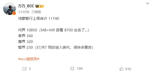 新势力周销量榜更新,小米汽车超鸿蒙智行跃居第二